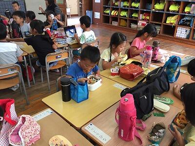子ども達のお弁当はカラフルで美味しそうなものばかり!連日のお弁当づくりにもかかわらず、保護者の方が朝早くから愛情をこめて作って下さったお弁当を見ると、とても心が温かくなります。ありがとうございます。子ども達はとっても良い顔で、美味しそうに食べていますよ!今日もごちそう様でした。