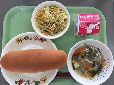 減量コッペパン 牛乳 塩焼きそば 肉団子のスープ