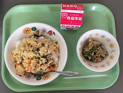 今日の千切り大根の酢の物には、ちりめんが入っていました。ちりめんは、カタクチイワシやマイワシの赤ちゃんです。ちりめんは丸ごと食べられるので、カルシウムをたくさんとれます。そのカルシウムですが、実はビタミンDがないと、骨や歯まで十分に運ばれないのだそうです。レバーやいわし、さば、かつおなどの魚にはビタミンDが多く含まれています。また、太陽の光に当たると体の中でつくることもできるので、外で元気に遊ぶことも大切です。上手に栄養をとれるように、生活習慣にも気をつけたいですね。