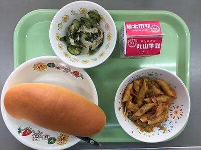 減量コッペパン 牛乳 炒めビーフン 根菜かりんとう