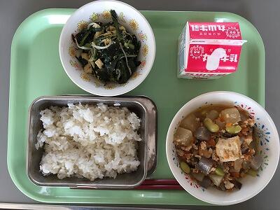 麦ごはん 牛乳 大根のそぼろ煮 すみそ和え