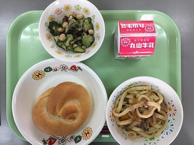 米粉パン 牛乳 うどんすき まめまめサラダ
