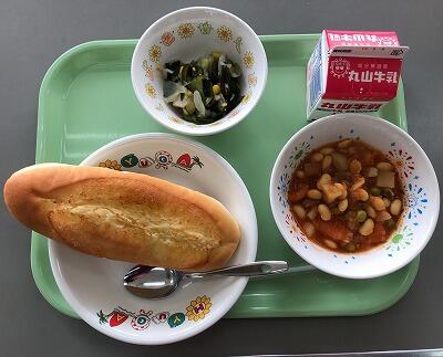 コッペパン 牛乳 スクランブルエッグ ミネストローネ きんかん
