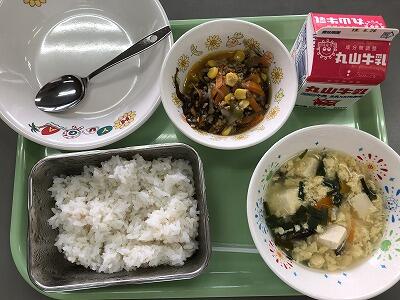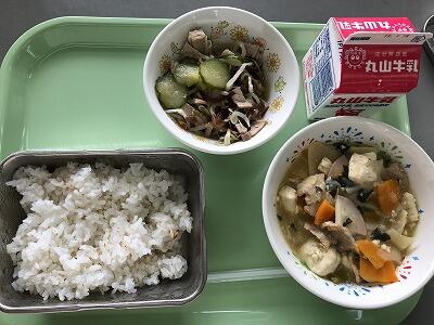 とうふの中華煮 きくらげのあえもの 麦ご飯 牛乳