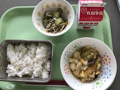 とうふの中華煮 きくらげのあえもの 麦ご飯 牛乳