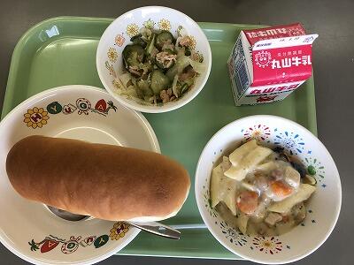マロニースープ 野菜コロッケ ミルクパン 牛乳