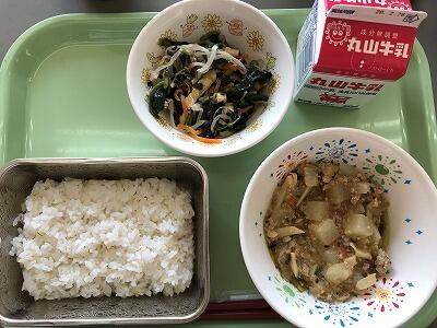 今日の給食は、ゴボウやレンコンなど根菜がたっぷり入っていました。