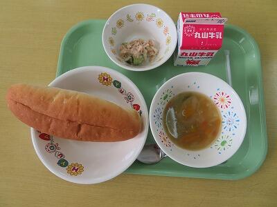 サマースープ ツナサラダ ドッグパン ぎゅうにゅう