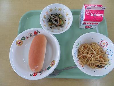 ぐだくさんペペロンチーノ れんこんサラダ げんりょうコッペパン ぎゅうにゅう