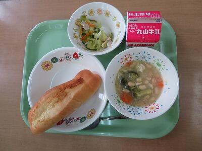 今日の給食には、「まめまめポトフ」が出ました。豆には、体の筋肉や血を作ったり、体を丈夫にする栄養素があり、おなかの中をきれいにする働きもあります。小豆、大豆、白インゲン豆、黒豆、エンドウ豆、ひよこ豆など、豆にはいろいろな種類がありますね。今日のポトフには、大豆、ひよこ豆、青えんどう豆、レッドキドニーが入っていました。