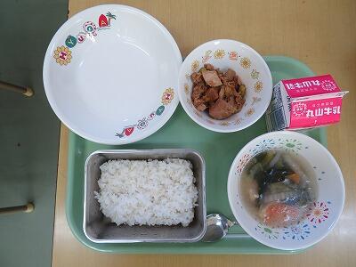 今日は、「大豆」を使ったケチャップ煮が出ました。大豆は乾燥したままではかたくて食べることができません。そのため、昔からいろいろな方法で加工されてさまざまな食品が作られてきました。たとえば、大豆を炒って「炒り豆」にし、それを粉にすると「きな粉」になります。大豆を煮ると「煮豆」に、蒸した大豆に菌を加えて発酵させると「納豆」や「みそ」や「しょうゆ」になります。大豆を水につけて砕いて絞り加熱すると「豆乳」ができ、豆乳ににがりを加えると「豆腐」になります。
