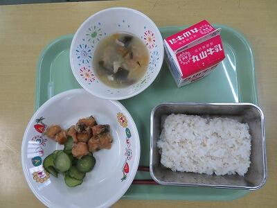 今日は、奈良県の郷土料理である「吉野汁」がでました。吉野汁は野菜たっぷりのすまし汁にくず粉をといてとろみをつけた汁です。くず粉の産地が奈良県の吉野であることからこの名前がつけられました。現在、くず粉は貴重品になり、今日はくず粉の代わりに片栗粉が使ってあります。あんかけのように口当たりがよく、冷めにくいので寒い時に体が温まります。