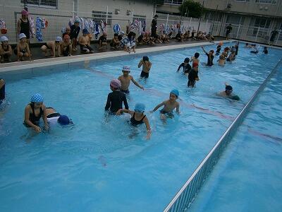 各クラスバディを確認した後、プールサイドに座ったバタ足から始め、もぐってみたり、プールの底に沈んだ貝集めをしたりして無事に終わることができました。