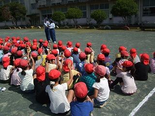 そのあと、クラスに分かれて、横断歩道の渡り方、信号の色の意味、