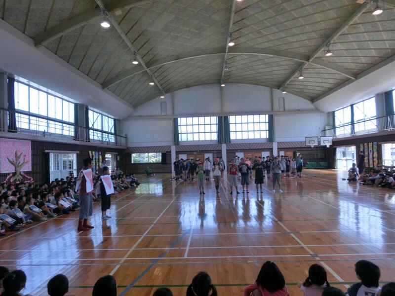 今日は、新1年生を迎える対面集会が体育館でありました。