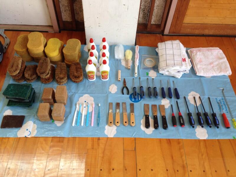 さすがに1年間使わないと、土砂がたくさん入っていて、昆虫(ヤゴ等)のすみかになっていました。2時間かけてやっときれいになり、今は天日に干しているところです。