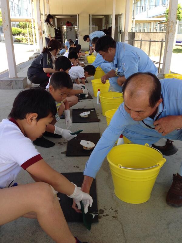 協力頂いた社員の皆様は、どの方も明るくて、嫌な顔一つせずに、財光寺小学校の便器をきれいに磨き上げてくれました。