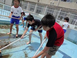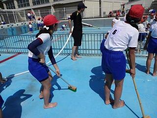 昨日は、4年生から6年生でプール清掃を頑張りました。