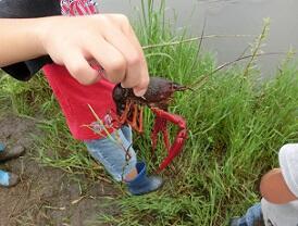 7日(火)は子ども達が待ちに待った、ザリガニ釣りでした。