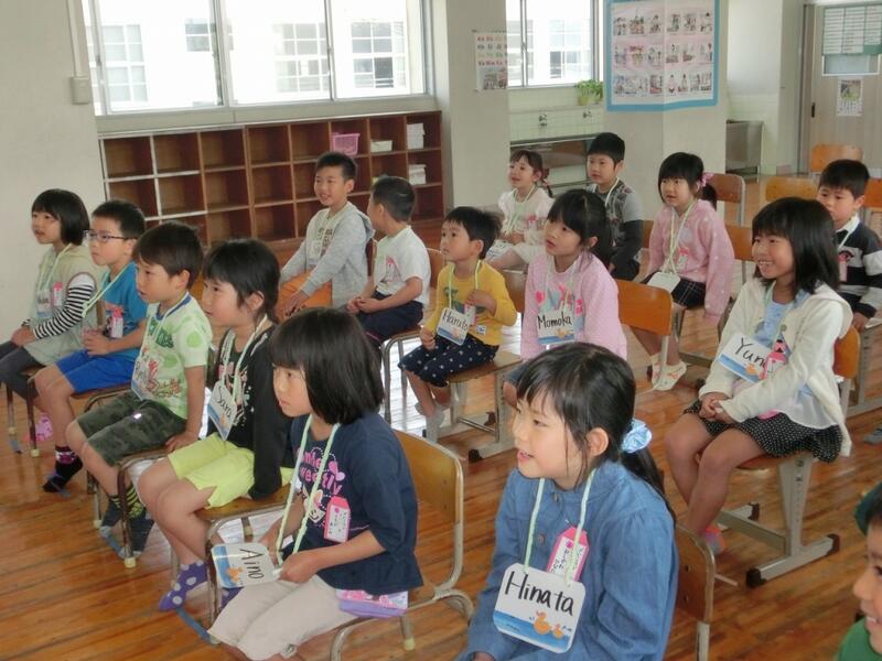 入学式から1週間が経とうとしています。1年生は毎日文字の練習や数の勉強を頑張っています。そんな中、今日は初めての英会話の学習がありました。