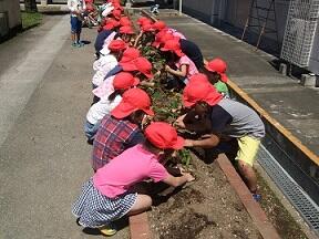 生活科でサツマイモの苗を植えました。