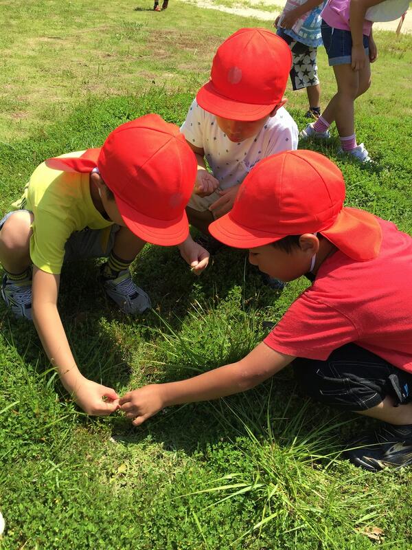 公園に行ったら夏探しをしました。バッタやだんごむしがたくさんいました!