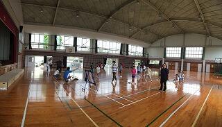 体育館で、子ども同士のドッチボール大会!そして 、子ども対大人の対決も楽しみました。