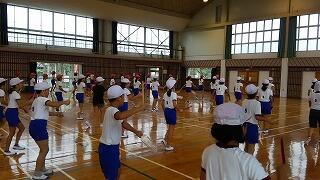 今月25日の運動会に向けて、5年生は社会科で学習した沖縄県の伝統芸能「エイサー」に取り組んでいます。