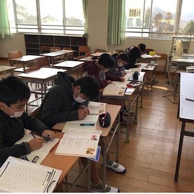 昨日でCRT学力検査も終了しました。今日から5、6年算数ではテストに向けた復習を中心とした授業を終え、通常通りの授業が始まりました‼インフルエンザの児童も増えてきており、5年2組の算数少人数クラスでは普段よりもさらに少ない人数での授業となりましたが、全員気持ちを入れ替えて活き活きと授業に臨んでいました。