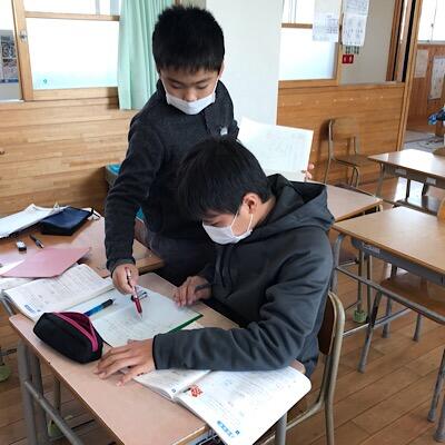 1月も終わりに近づき、各教科まとめに入る時期となってきました。しかし、5年生の算数ではまだまだ覚えることがたくさん‼︎5年生の単元の中でも特に苦労する、割合の学習を頑張っています。「もとにする量・くらべる量・割合」それぞれを文章問題の中から読み取って、正確な関係図をかいて式を立てられるよう、毎時間丁寧に学習しています。算数少人数では問題を解き終わった児童らにミニ先生をお任せして、お互いに解き方を教え合ったり、丸つけをし合ったりして、全員で協力して割合の勉強に臨んでいます。(写真は5年1組の児童です)