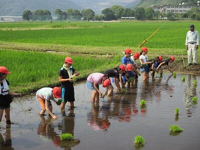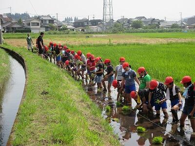 子どもたちは、地域の方々のお話をよく聞き、苗を一本一本丁寧に植えていきました。また、手際よくスムーズに田植えの作業を行うことができ、地域の方々からお褒めの言葉をいただきました。