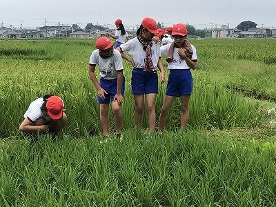 子どもたちの感想より、「夏休みにまた観察しに来たい。」「穂を実らせているとなりの田んぼの稲のように、早く大きく育ってほしい。」など、期待に胸を膨らませながらの活動になりました。