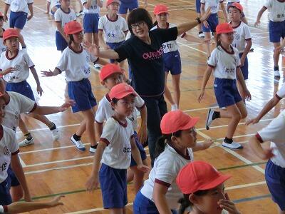 児童クラブや地区などで踊ったことがあるという児童が1割程度で、多くの児童にとっては初めての日向サンバの練習になりました。今日は初めての練習ということで日向サンバの流れをつかみました。