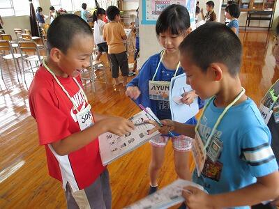 友だちにHow are you?と尋ねながらビンゴを狙うゲームです。ゲーム中は日本語は禁止!じゃんけんだって「Rock Scissors Paper 1・2・3!」と英語でしますよ。