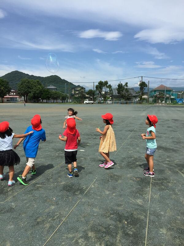 今日の生活科は夏の遊びの1つである「しゃぼん玉」で遊びました。