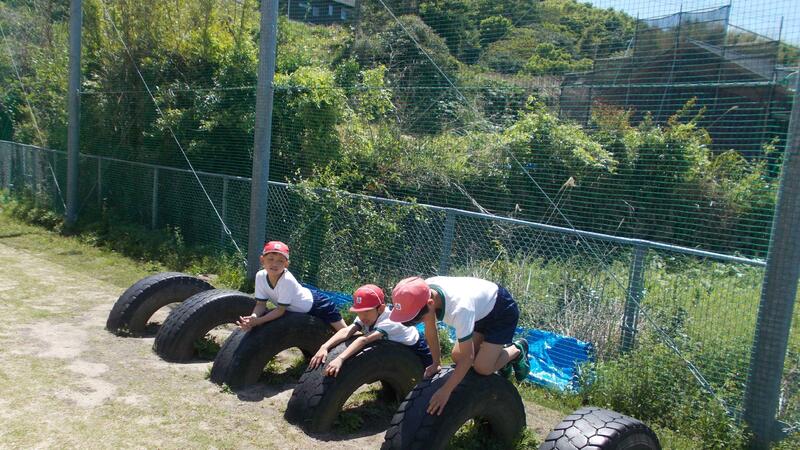 「待っていました!」と言わんばかりに、チャイムとともに子どもたちは外へ。 太陽の下、元気いっぱいに走り回る姿が見られました。
