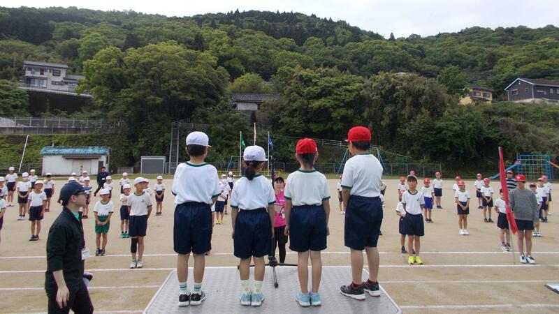 不安定な天気でしたが、雨の合間をぬってグラウンドで実施することができました。限られた時間の中、子どもたちは集中して練習に取り組んでいました。