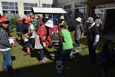 「花の苗の定植」については、本年度からの企画で、費用の面も含めてHososhimaまちづくり協議会とのコラボとなっており、コミュニティースクールにもつながる活動と考えているところです。これからも、児童・教師と地域の方々とが顔見知りになり、おらが地域の学校として、さらに親しんでいただけるようになるといいなぁと思っています。