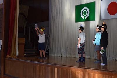 次に、図書委員会の児童が、「もも太郎」のお話をもとにした劇で、おすすめの本の紹介や図書館に行こうという呼びかけをしました。