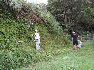 作業は、夏の間に伸びに伸びた草たちを、きれいに刈っていただき、袋に入れるところまでしていただきました。