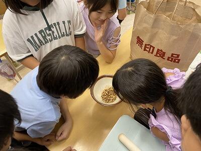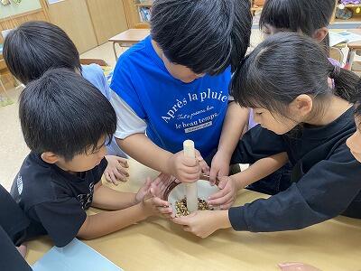 自分で調節ねじを回してピントを合わせたり、反射鏡で明るさを調整したりしてたまごがどうなっているか調べました。見えたときには「すごーい!」「先生、見てください!」と大歓声。(*^ω^*)新しい発見があり、楽しそうな子ども達でした♪