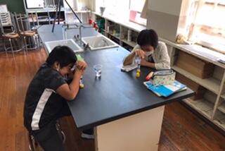 前時に空気の性質について学習し、閉じ込めた空気は押すと体積が小さくなること、強く押すほど手ごたえが強くなること、手を離すと元に戻ろうとすることを実験から見つけ出しました。
