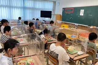 新型コロナウイルス感染対策を取りながら、給食を食べています。