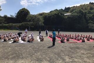 全校ダンスは細島の伝統である棒踊りの練習でした。