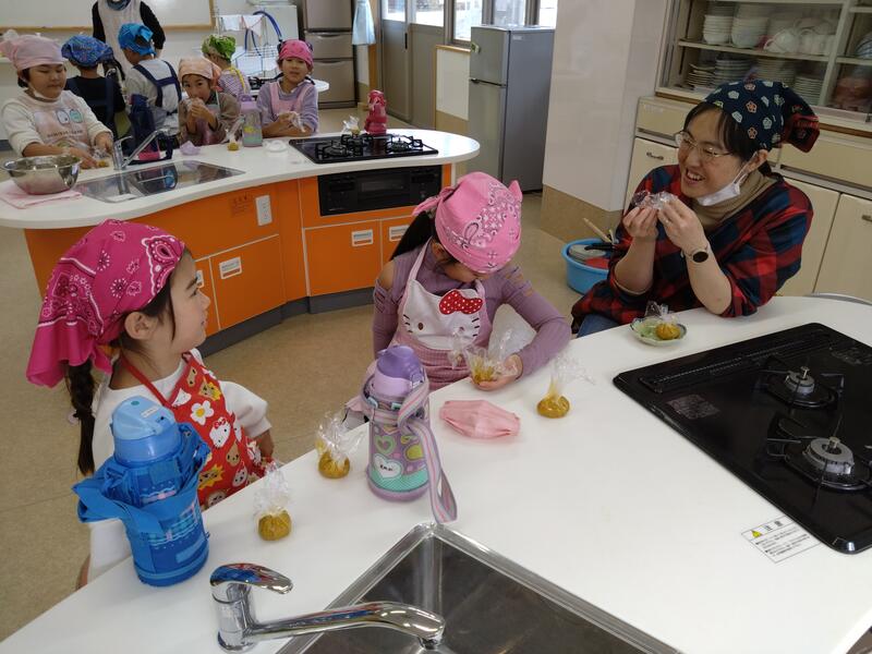 自分たちの掘ったお芋を使って、いもきんちゃくを作りました♪
