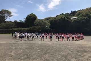 全校ダンスは細島の伝統である棒踊りの練習でした。