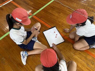 ボールを落とさないための作戦をチームごとに考え、取り組んでいました。