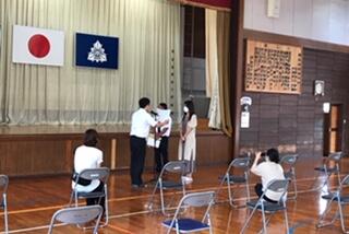 コロナウイルスの影響で、全校集会を放送で行っています。