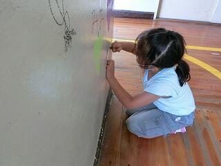 「だれですか?廊下の壁に落書きしているのは・・・?」