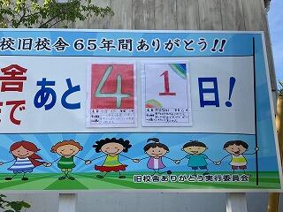 この校舎は、新校舎ではなく、旧校舎です。あと39日後には、取り壊されます。今までお世話になった旧校舎へ感謝の気持ちを込めて、絵や文で表現しています。
